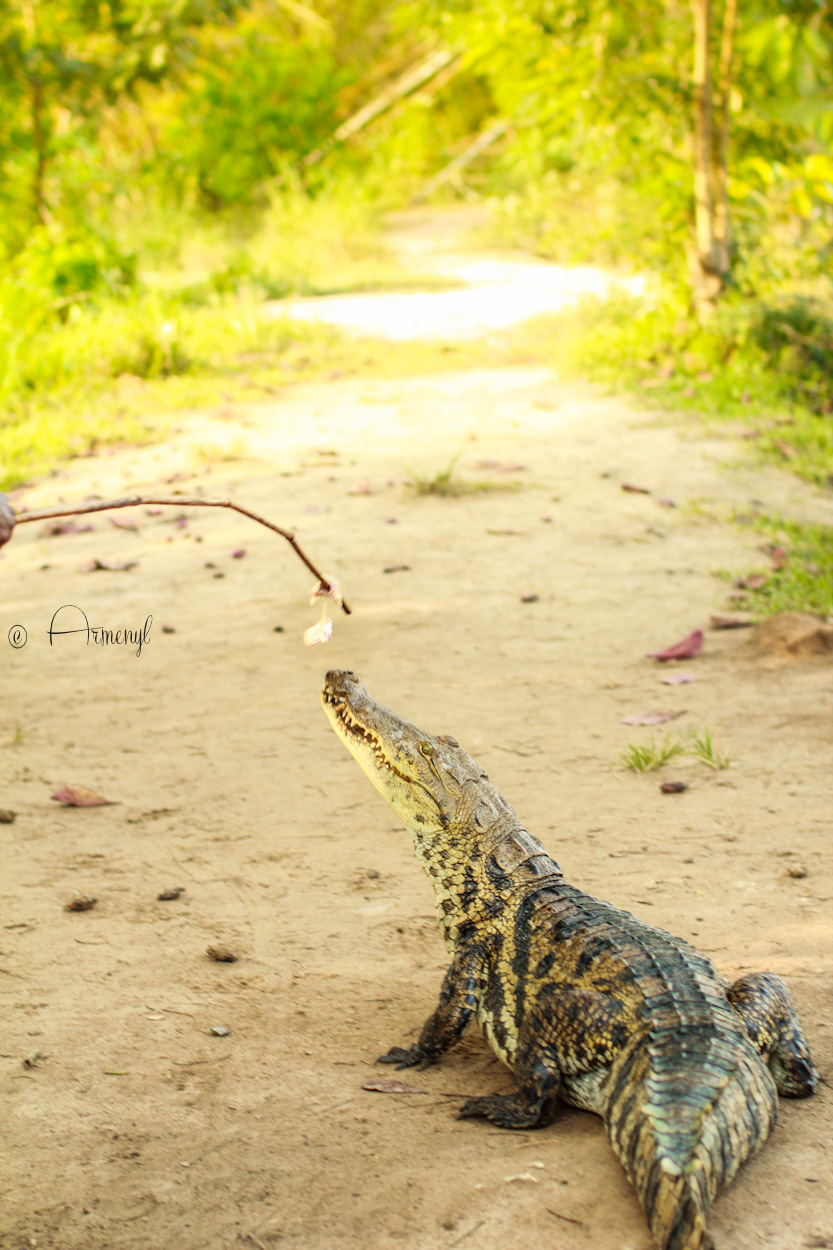 Here is one of my brave moments getting really up close and personal with a crocodile. At first, it was a lot of hiding behind people and standing as far away from the crocodiles as possible. Then, one baby step after the other, I was getting closer and closer to the crocs, and at one point of bravery high I almost sat on one. Of course, the tour guide was nearby in case things painfully backfired. The crocodiles were pretty tame or perhaps they were just very lazy. Either way, it was a good thing.